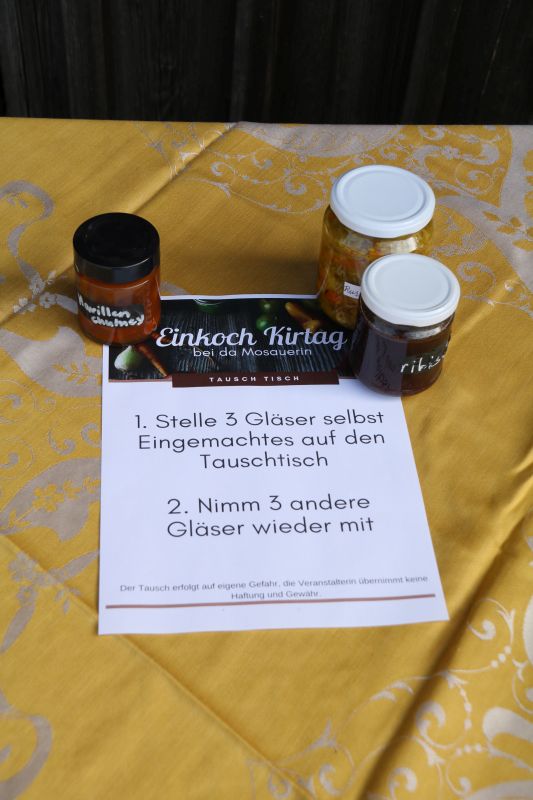 Der Tauschtisch erfreute sich – erfreulicherweise – einer großen Beliebtheit. Man konnte 3 Gläser selbst eingemachtes mitbringen, auf den Tauschtisch stellen und sich drei andere Gläser wieder mit heimnehmen.