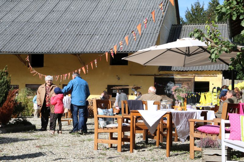 Dank der großartigen Hilfe von meinen Schwestern, meiner Mama und der Familie Mayringer aus Kirchdorf ging es sich wirklich aus: am Samstag pünktlich um 10:00 war alles fertig und hergerichtet und perfekt dekoriert und bereit. Da die Wettervorhersage ziemlich schwankend war, haben wir uns auch für den Ernstfall eines Regentages vorbereitet und den Stadel als Ausweichquartier hergerichtet. Glückskinder wie wir sind, wurden wir für unsere Mühen mit einem Traumwetter belohnt und so konnten wir alle Standln und das Hofcafe im Hof selbst abhalten.