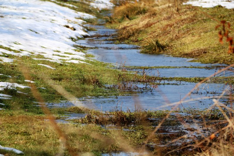 In meiner „über die Mosauerin“ Seite habe ich ja erwähnt, dass es bei uns Mosauer heißt weil der Bereich hier Mosau – moosige Au genannt wurde. Jetzt, wenn der Schnee schmilzt (oder wenn es mal viel regnet) kann man gut erkennen, warum das so genannt wurde. Hier ist es also, die Mosige Au, oder wie wir sagen das „Gerinne“, das nicht immer mit Wasser gefüllt ist, jetzt gerade aber doch.