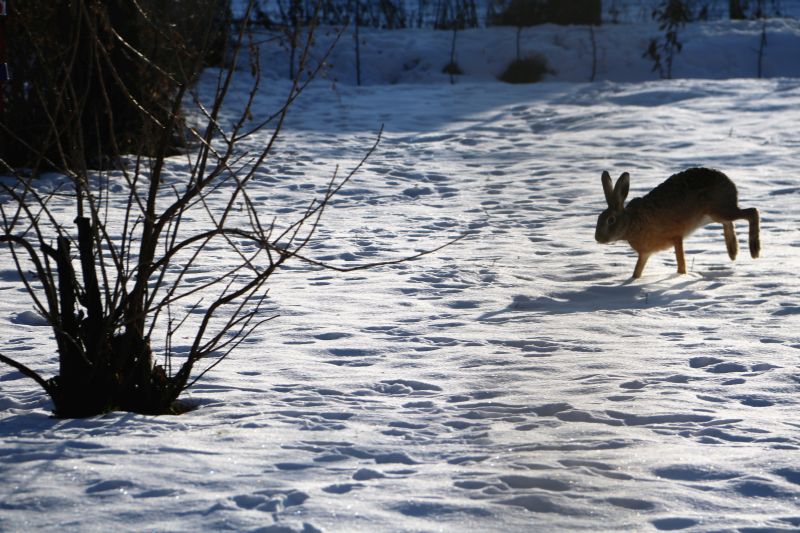 Der Karpfenteich ist noch gut zugefroren, der Mosauer hat aber auch schon begonnen den Schnee hineinzukippen, darunter wohnen übrigens zwei Hortensien. Mal schaun, ob die das überlebt haben… Jaja, der Mosauer und die Pflanzenwelt waren noch nie besondere Freunde…